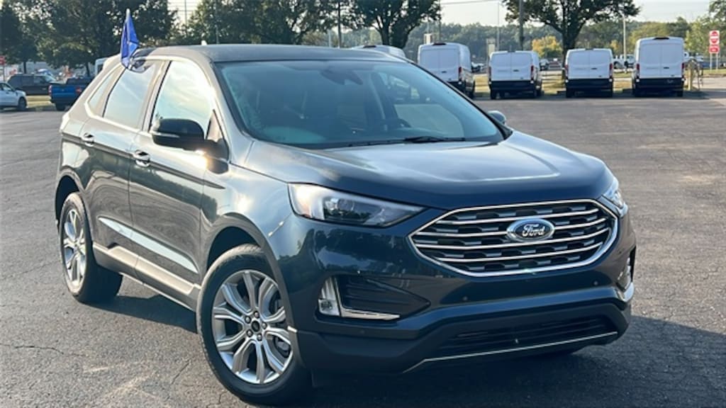 2024 Ford Edge Titanium in Stone Blue Metallic vehicle highlights include...., Ford Blue Certified, Clean One Owner Carfax, FordPass Connect, Heated front seats, Heated steering wheel, Illuminated entry, Leather steering wheel, Memory seat, Power Liftgate, Remote keyless entry, SYNC 4A w/Enhanced Voice Recognition, 4D Sport Utility, EcoBoost 2.0L I4 GTDi DOHC Turbocharged VCT, 8-Speed Automatic, AWD, Ebony Leatherette, ActiveX-Trimmed Heated Sport Bucket Seats, Alloy wheels, Auto High-beam Headlights, Automatic temperature control, Equipment Group 300A.